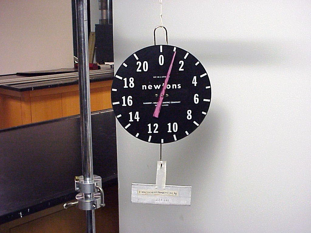balance is shown with an accurate 1N mass hanging from it in the