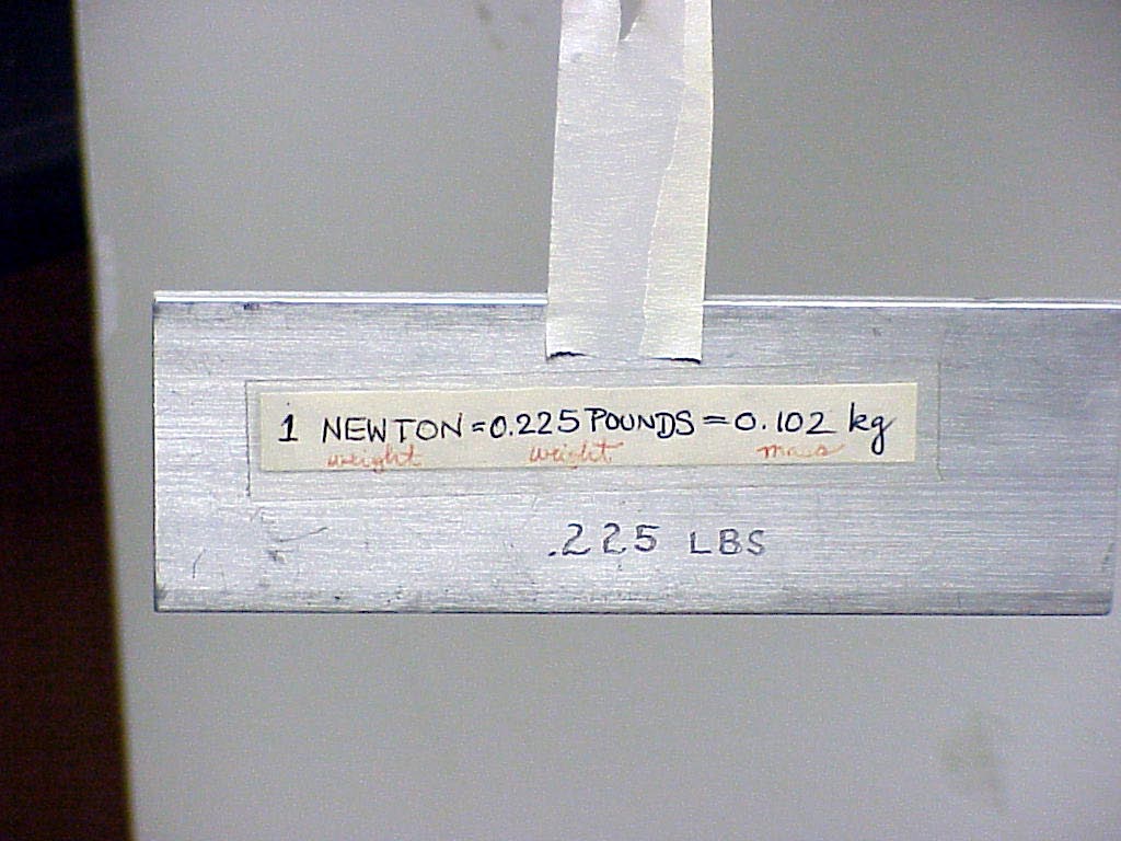 closer view of the 1 N weight is seen in the second photo.