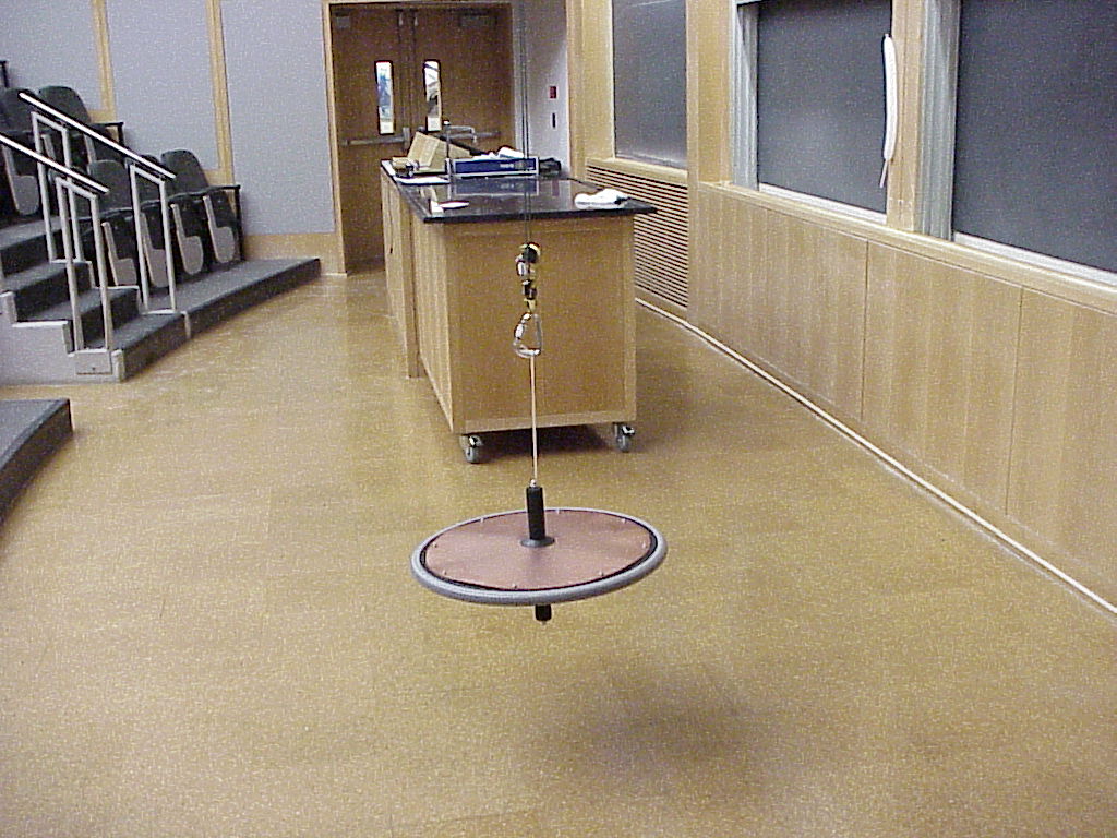 is hanging from the ceiling cord in the lecture hall (with no spin) in