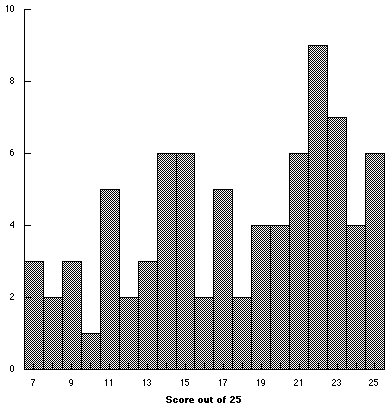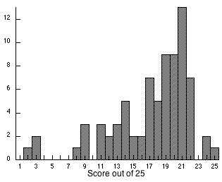 mean = 17.5 out of 25 (70 %), std. dev. 5.3 (21.2 %)