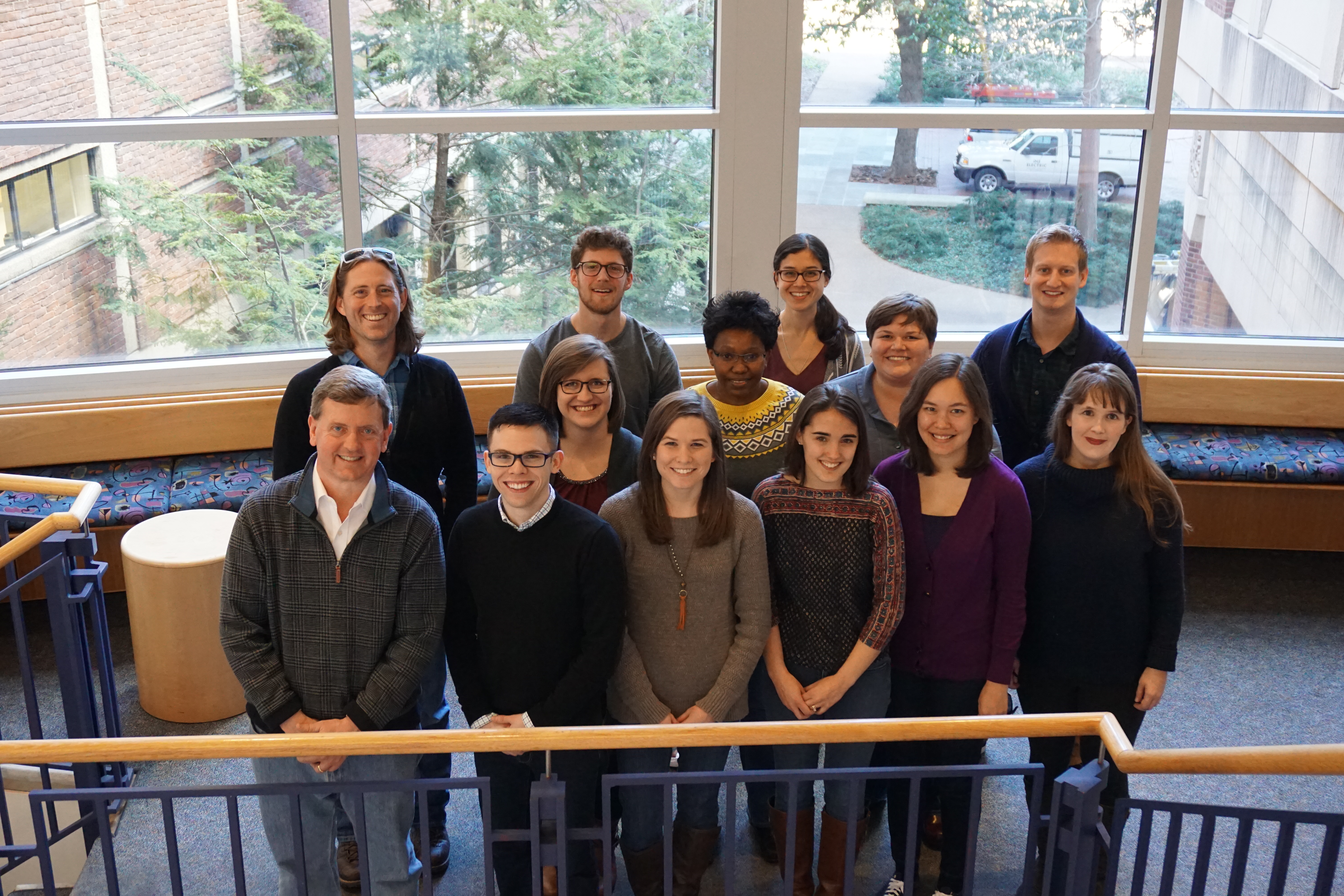 Lab Members (left to right)- Back row: Joseph, Andrew, Kim, Wes; Middle Row: Anna, Lwiindi, Danielle; Front row: David, Adam, Lauren, Christine, Alexis, Kelly