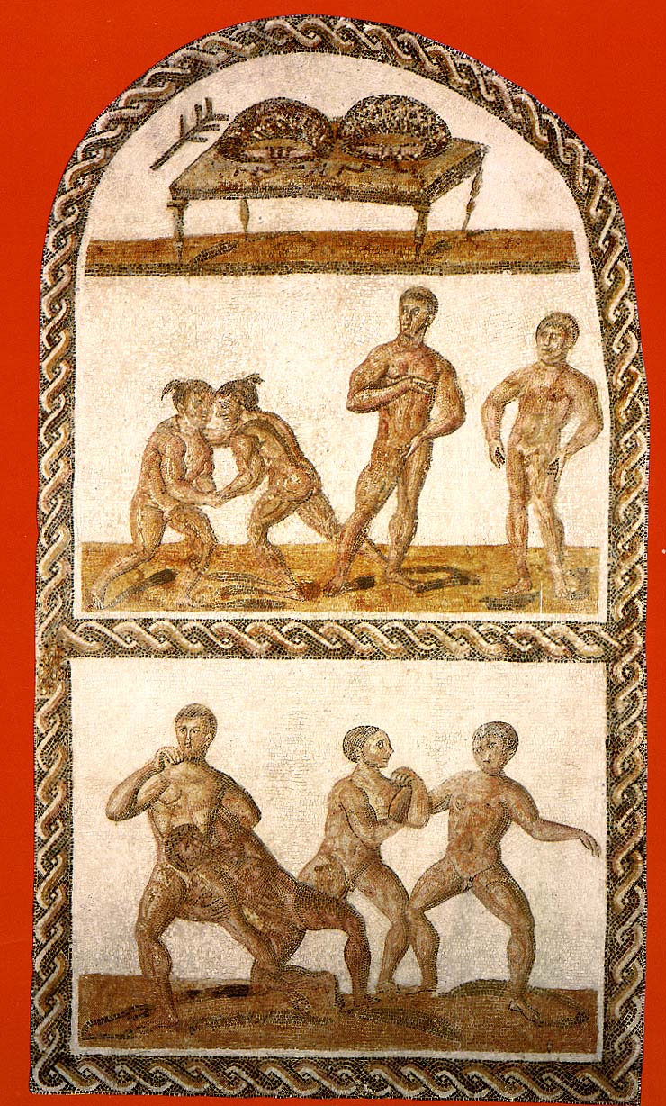 Wrestlers and the prizes destined for the winners (Museum of Sfax)
