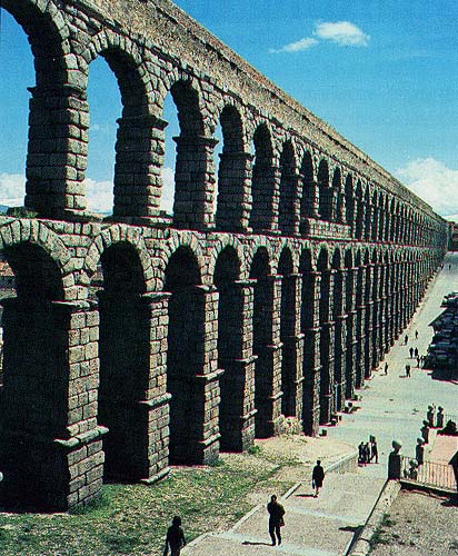 Aqueduct in Segovia, Spain, probably built in the reign of Trajan. This is the final section of the aqueduct that starts in the hills ten miles away.