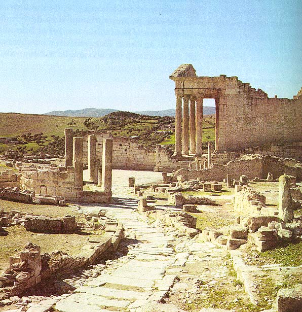 Capitol at Dougga, with temples to Jupiter, Juno and Minerva, dedicated 166 AD.