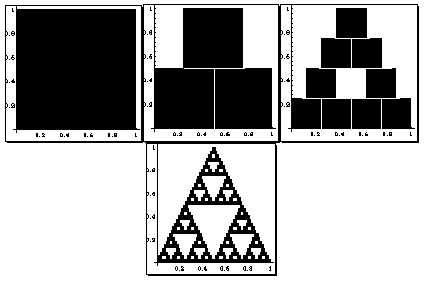 with a square and apply the set (see figure 4). The result is a fractal known as