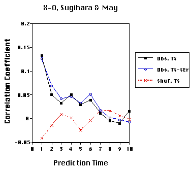 Figure 6. Predictability as prediction time increase (n=12), lag=1, Sugihara & May