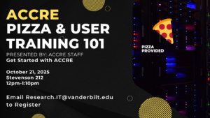 Please join us October 21, 2025 in Stevenson 2- room 212 from 12-1pm for New User Training. Pizza provided. Please RSVP to: research.it@vanderbilt.edu