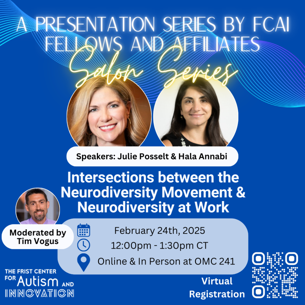 In this fireside chat style conversation, Dr. Vogus will facilitate a dialogue between Dr. Posselt and Dr. Annabi to examine the intersections between the Neurodiversity at Work movement and the broader Neurodiversity movement. Together, they will explore key characteristics of effective social movements, the role of the Neurodiversity at Work movement in advancing the broader neurodiversity movement, and points of convergence and divergence in goals and methods. The conversation will surface the need for dialogue among stakeholders with differing ideologies and strategies, considering academic, corporate, community, and policy dimensions. The conversation will also explore how academic research centers can support integrated solutions, using strategies from institutions like the Frist Center for Autism & Innovation, UW’s Neurodiversity Initiative, and USC’s research-policy-practice (RPP) framework.