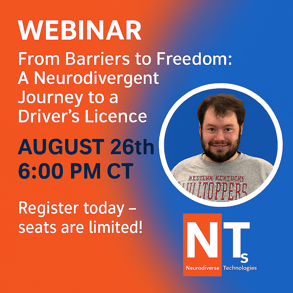 Neurodiverse Technologies welcomes its newest ambassador, Jummy Humphrey, to tell the story of his own driving journey in this webinar!