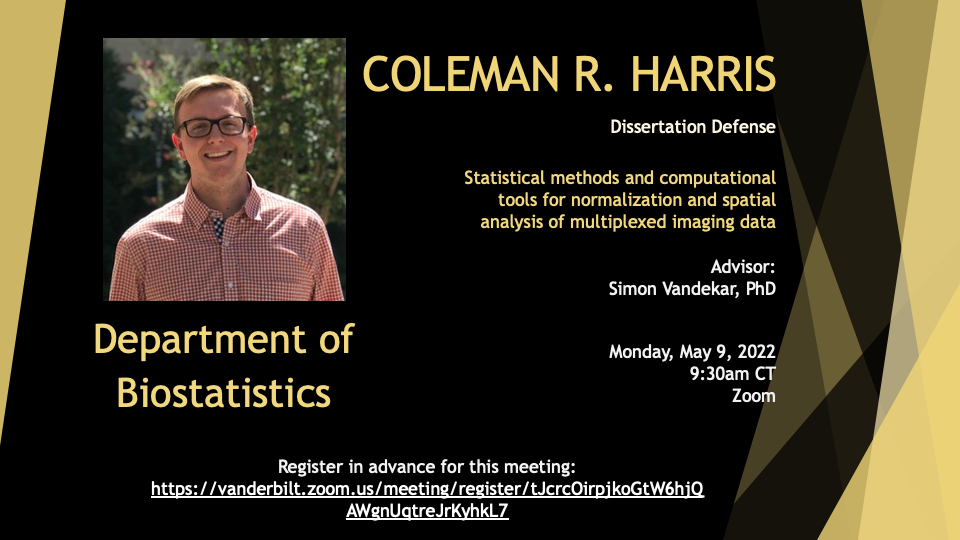 PhD candidate Coleman Harris will be defending his dissertation on Monday, May 9, at 9:30 a.m. Central Time. All are invited. To attend the defense, which will take place online, please register in advance.