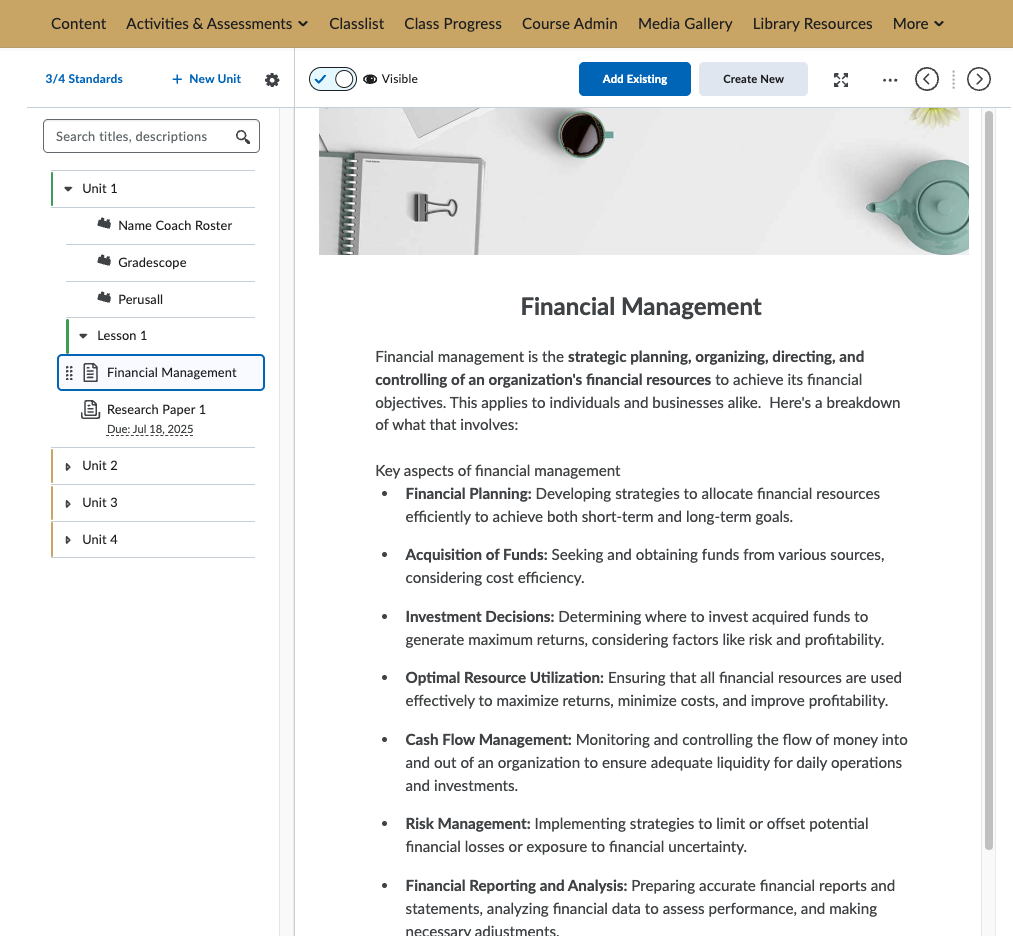 This month also brings several new updates to the Lessons View formatting of the Content section of any Brightspace course. For more information on what the Lessons View content view is, please refer to our “What is Lessons View?” help page. With this update, the following improvements come to courses with Lessons View enabled: