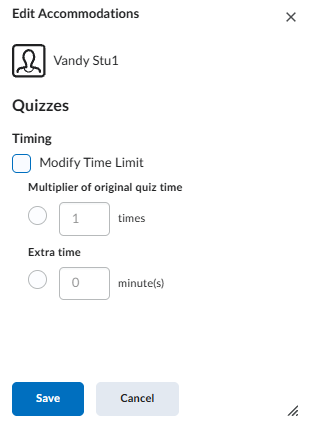 - Once a student has quiz accommodations assigned to them, you will see an