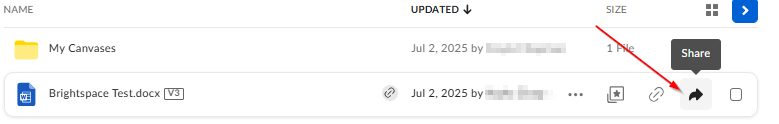 1.) Hover over the file you’d like to share, and several options will appear on the right. Select Share