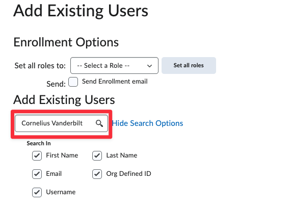 Adding a user to a Non-SIS course is less common. This applies to Brightspace courses belonging to organizations, programs, cohorts, and other groups. These courses are not associated with Vanderbilt course credits. To learn more about courses not listed in Vanderbilt’s SIS, click here.