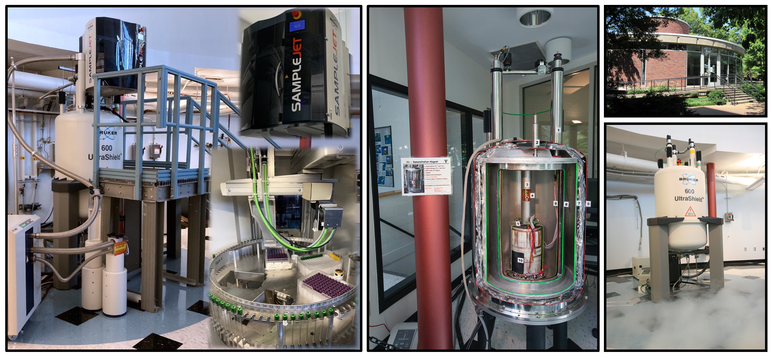 The Biomolecular NMR Facility is a state-of-the-art center located in the round building that is part of the Stevenson Center Complex on the main Vanderbilt campus. The staff are happy to help research groups start an NMR project, discuss the project specifications or do a pilot/feasibility study for a grant or a new research direction.