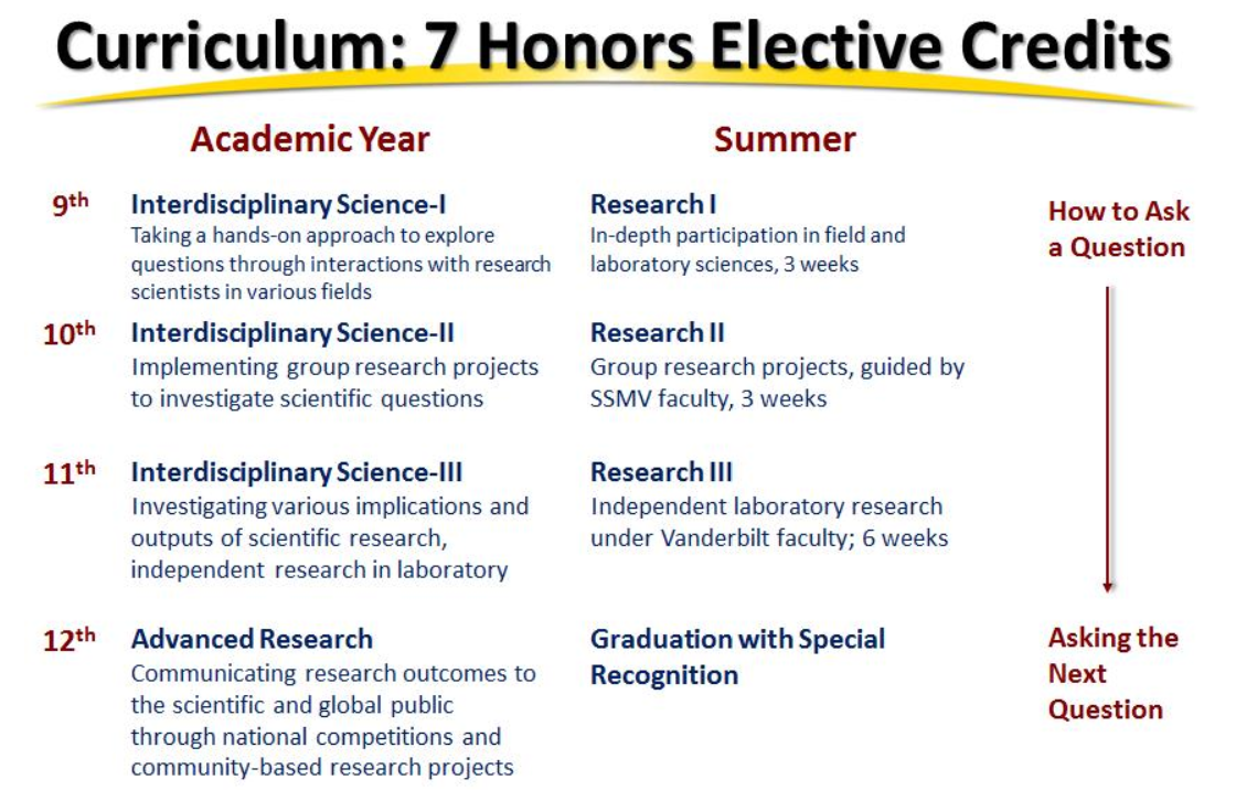 We live in a fast-paced world that requires a society and workforce with strong science and technology backgrounds. The School for Science and Math at Vanderbilt (the SSMV) seeks highly-competent and motivated 8th grade Metro Nashville Public Schools (MNPS) high school students who are :