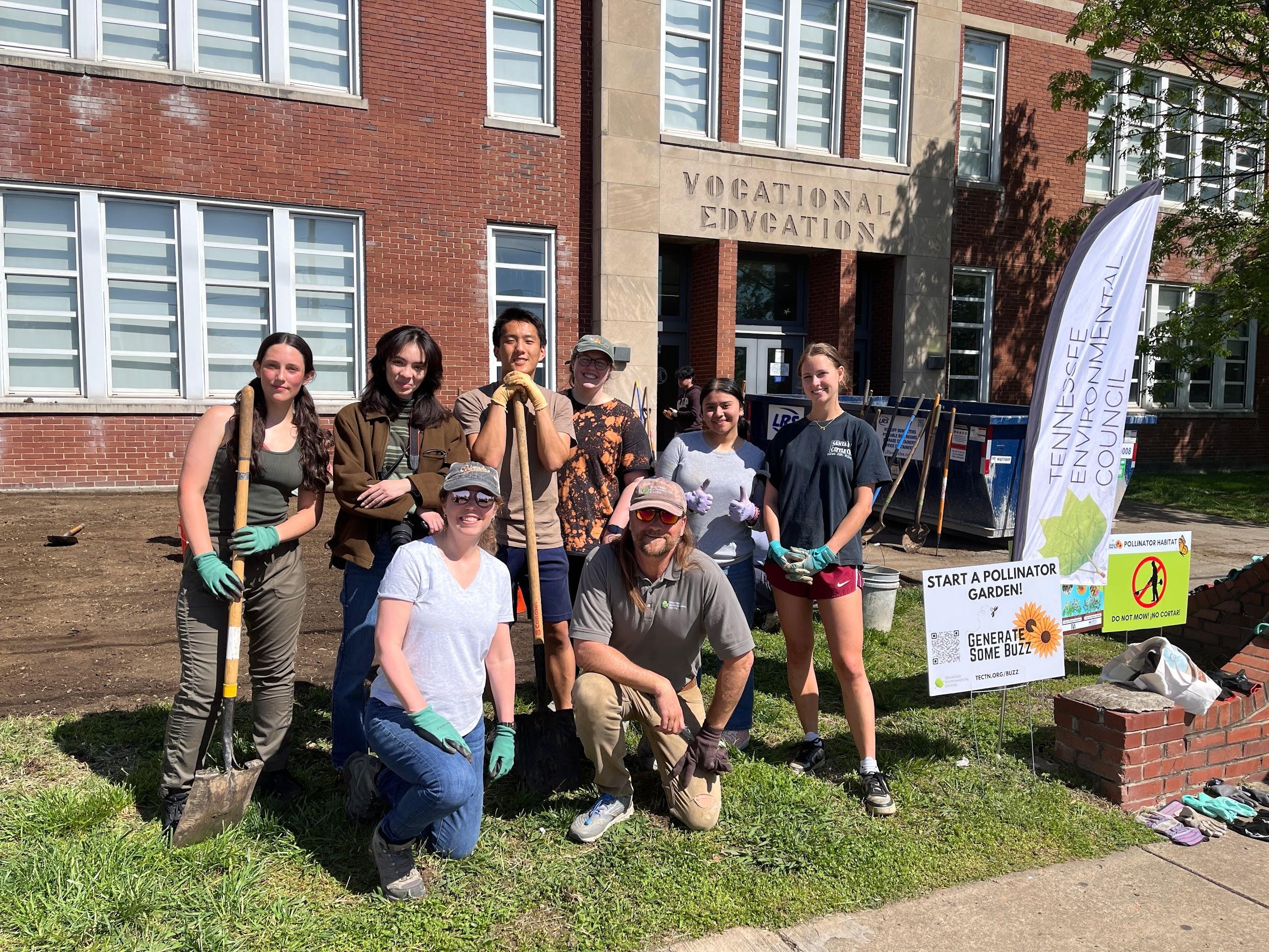 In continuation of a longstanding collaboration with the Tennessee Environmental Council (TEC), a group of students at the School for Science and Math at Vanderbilt (SSMV) worked to expand the TEC’s statewide mission to implement pollinator gardens, drive community engagement, and encourage environmental consciousness.We aimed to engage more youth in this mission through new methods of outreach. We recognized that, as high school students, we are in a unique position to provide insights on teen engagement in climate action. We developed four goals designed to get more young people involved: (1) Plant a pollinator garden at MLK Academic Magnet High School, (2) Document our pollinator garden planting journey and transform it into engaging, bite-sized Instagram reels to engage a younger audience, (3) Launch a youth-geared upcycling art challenge to encourage sustainable material use and thinking, (4) Finalize and beta test the mobile app that the SSMV Class of 2023 initiated.