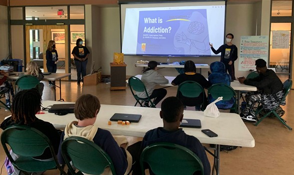 The Vanderbilt Center for Addiction Research (VCAR) is a research center dedicated to understanding the development of addiction and substance use disorder in the brain. VCAR makes significant efforts to destigmatize addiction through community engagement, and education. Since 2017, the School for Science and Math at Vanderbilt (SSMV) and VCAR have collaborated to participate in outreach within the community which included going to middle schools across Metro Nashville and presenting information to students to educate them on the neurobiology of addiction. This year, we presented to thirty seventh grade students at Head Middle Magnet School.In collaboration with the VCAR team, we created an informative and engaging presentation on the neurobiology of substance abuse. Topics that were covered in this presentation included dopamine, the reward system, and specific information about certain drugs, including nicotine, cocaine, marijuana, and alcohol. Additionally, to encourage participation, we created a Kahoot! Quiz (online quiz game that allows students to compete with other students) and had interactive questions embedded into the presentation in order to encourage engagement and participation with the students.