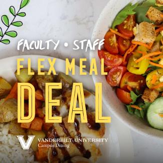 Campus Dining is pleased to announce its fall 2024 Flex Meal Deal for Vanderbilt faculty, staff, and graduate and professional students. A convenient option for those who wish to dine on campus, Flex Meals allow for quick and easy meal payment across Campus Dining’s award-winning network of 20 dining halls, munchie marts, and cafes, including our new European-inspired Café Carmichael, located in Oliver C. Carmichael College.