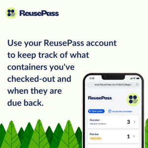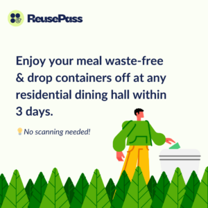 After enjoying your meal, return your green ReusePass container directly to the dish return area at any participating location to be washed, sanitized, and scanned back in. The returned item will be reflected on your ReusePass account within 24-48 hours. Repeat this process as often as you like, creating a loop of sustainable dining practices.