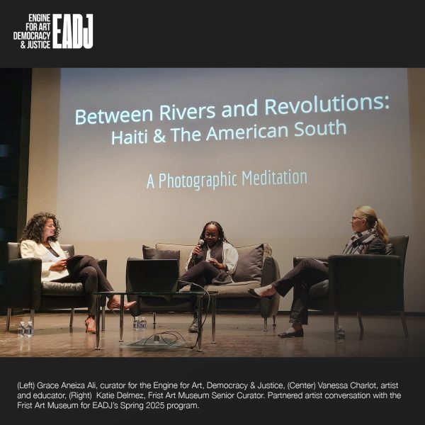 Join Haitian American artist and photographer Vanessa Charlot for a conversation with Grace Aneiza Ali, curator of the Engine for Art, Democracy & Justice (EADJ) at Vanderbilt University, and Katie Delmez, Frist Art Museum Senior Curator.