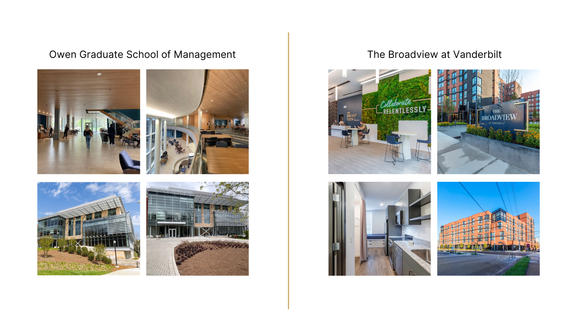 - Completion of the Graduate and Professional Student Housing, Broadview at Vanderbilt