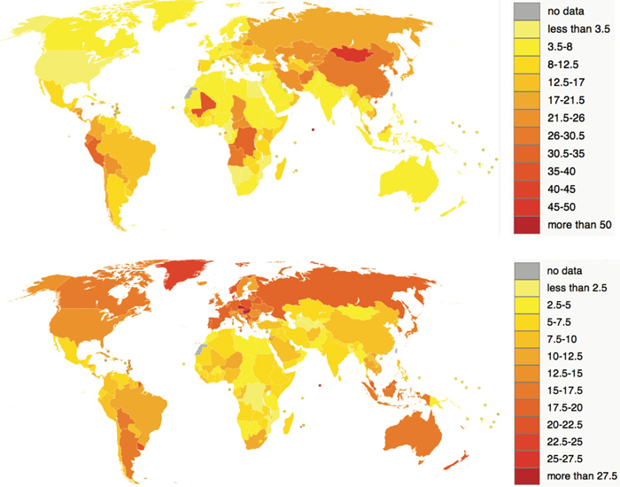 - Differences in the occurrence of cancer between communities. Worldwide epidemiological studies show striking differences in the incidence of almost all kinds of cancer between different regions of the world. From the lowest- to highest-risk regions, these differences can be as much as 100-fold. Examples include a 100-fold difference in the rate of liver cancer between England (low incidence) and Mozambique (high incidence), a 35-fold difference in the rate of lung cancer between Nigeria (low incidence) and England (high incidence), and a 300-fold difference in the rate of esophageal cancer between Nigeria (low incidence) and Iran (high incidence). Simply the fact that places exist where incidences of a particular form of cancer are very low suggests that the higher incidence rates in other parts of the world are preventable.