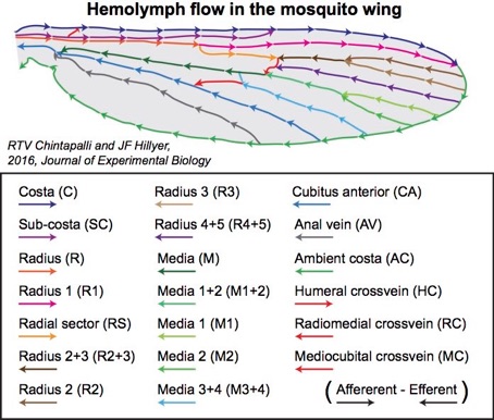 Chintapalli, R.T.V., and J.F. Hillyer. 2016. Hemolymph circulation in insect flight appendages: physiology of the wing heart and circulatory flow in the wings of the mosquito Anopheles gambiae. Journal of Experimental Biology. 219: 3945-3951. (PMID: 27742896) (See it in JEB) (Email me for a pdf copy)