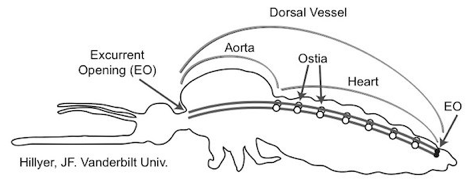 Insects employ an open circulatory system for the transport of nutrients, wastes, and signaling molecules throughout the body. The insect circulatory system also functions in thermoregulation, promoting ventilation through the tracheal system, and the circulation of humoral immune molecules and immune blood cells (hemocytes) that survey tissues for foreign entities.