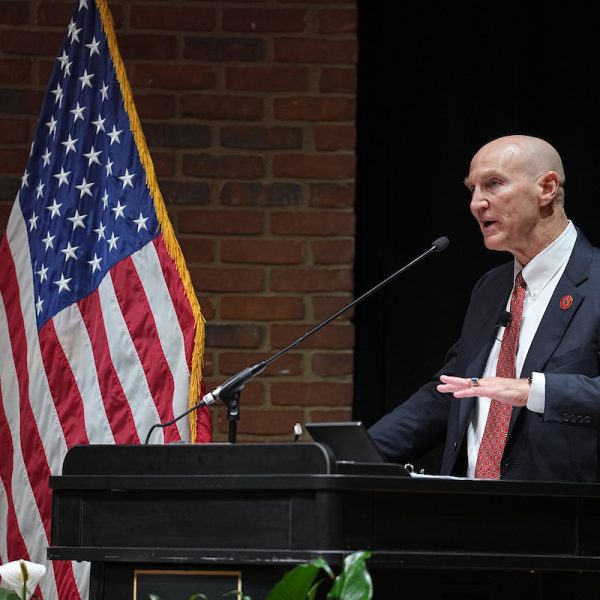 On Friday, Nov. 7, Vanderbilt University’s Institute of National Security and the Naval Reserve Officers’ Training Corps (NROTC) Alumni Association partnered for the first time to host a full day of programming celebrating leadership, service, and pragmatic solutions to national security challenges—culminating in the 15th Annual National Security Symposium in Sarratt Cinema.