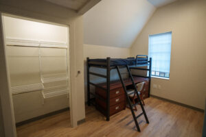 Carmichael College houses 305 upper-division students in four-person suites, traditional double rooms, and traditional single rooms. Corridors and common areas are carpeted. Student rooms have hard surface flooring.