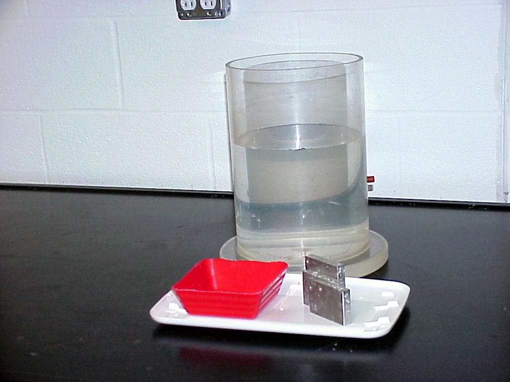 Demo DescriptionA red plastic bowl is used as a boat in which to float differing loads of Aluminum plates. The amount of displaced water is clearly seen for each configuration of added loading, as evidenced by the second and third photos. |