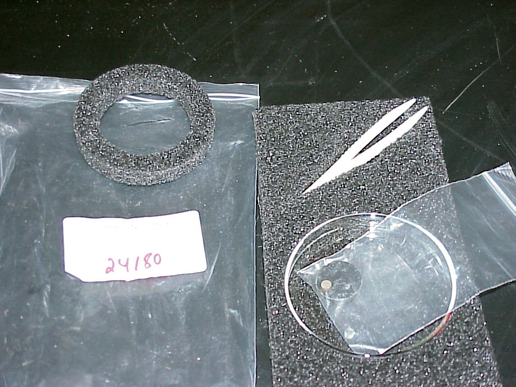 InstructionsThe magnet will levitate over the surface of black disc when the disc reaches liquid nitrogen temperature. Be careful not to subject disk to large forces (such as dropping it) as it is fragile. Probably best not to handle it directly. Let it reach room temperature and air dry before putting it back in its plastic bag. One must take the time to let all the students file past, or use video camera projection. The magnet is quite small and the levitation is quite modest. |