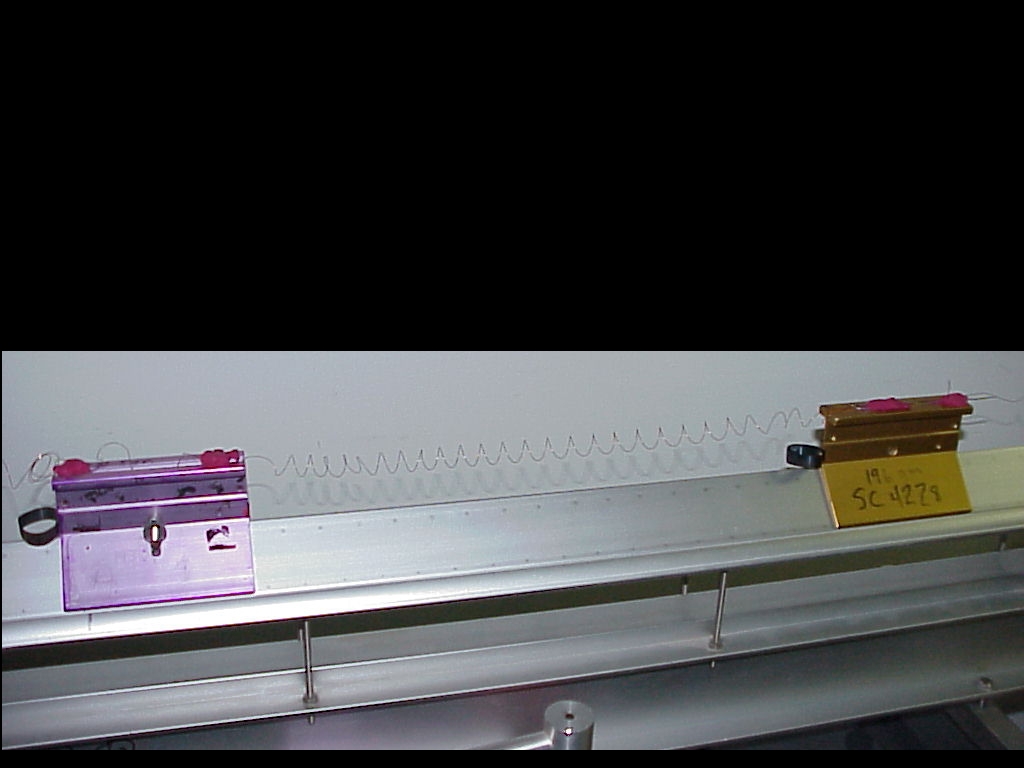 Demo DescriptionTwo gliders are joined by a very small 'K' spring. They each have their free end joined to their respective track end with an identical 'K' spring . |
