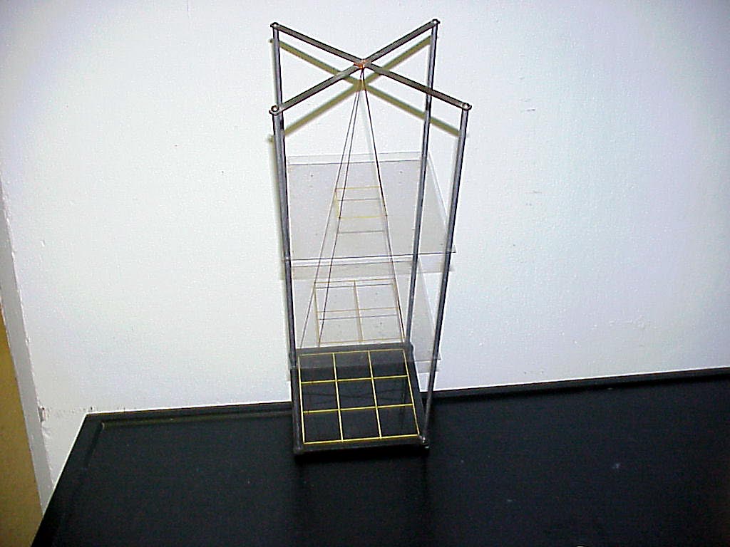 Demo DescriptionThree plastic square discs are spaced at 17, 34, and 51 cm from a 'point source' on a framework. |