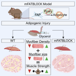 Dr. Norris recently completed work done at the University of Florida during her Ph.D. that led to a first-author publication in Cell Reports! She investigated the effects of intramuscular fat, a pathological feature characteristic in diabetes, muscular dystrophies and aging, on muscle regeneration. It was found that intramuscular fat acts as a barrier for nascent fibers and causes a loss in muscle function. This work sheds light on the relationship between skeletal muscle and intramuscular fat, highlighting the importance of preventing intramuscular fat formation to ensure proper muscle regeneration.