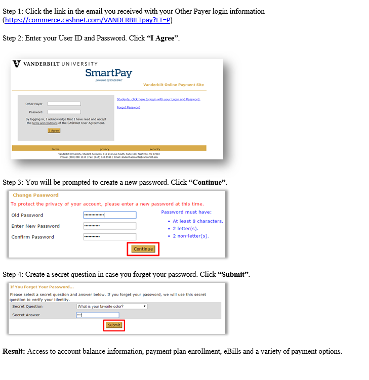 Account maintenance or setup questions to student.accounts@vanderbilt.edu.