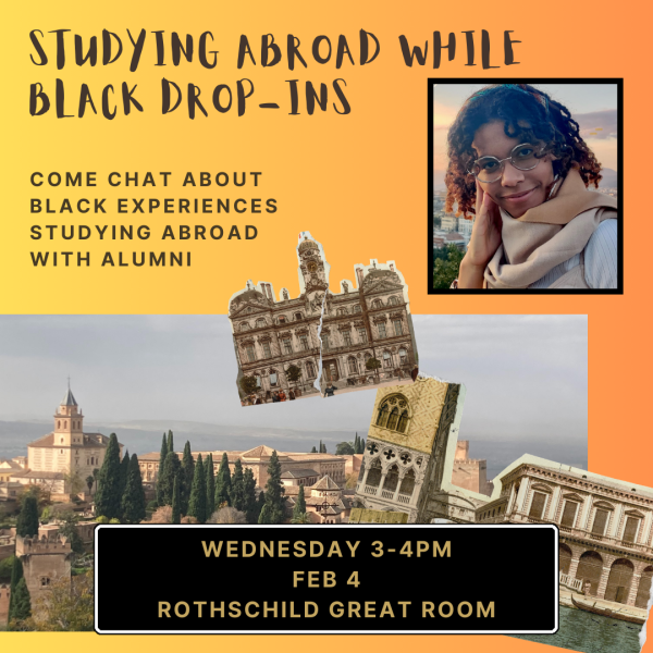 Date: Wednesday, February 4, 2026Time: 3 pmLocation: Rothschild Great RoomAudience: Students, Faculty, StaffIf you are thinking about studying abroad and wondering how identity factors in, come stop by Rothschild Great Room on Feb 4th at 3-4pm to chat with Black study abroad alumni as they share their experiences.