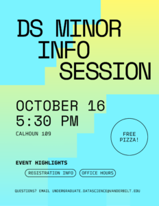 DS Minor Info Session: Class Registration & Office Hours | October 16 at 5:30 PM, Calhoun 109