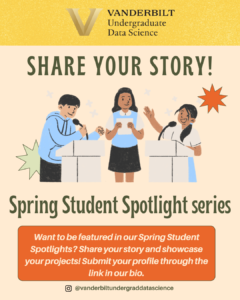 Curious how your peers are applying data science across campus? We’re excited to launch a new Student Spotlight series highlighting the incredible work DS Minors are doing in research labs, internships, coursework, and beyond. Each feature offers a closer look at how students are using the skills learned in the classroom to tackle real-world problems — from building machine learning models to uncovering insights through visualization and storytelling.