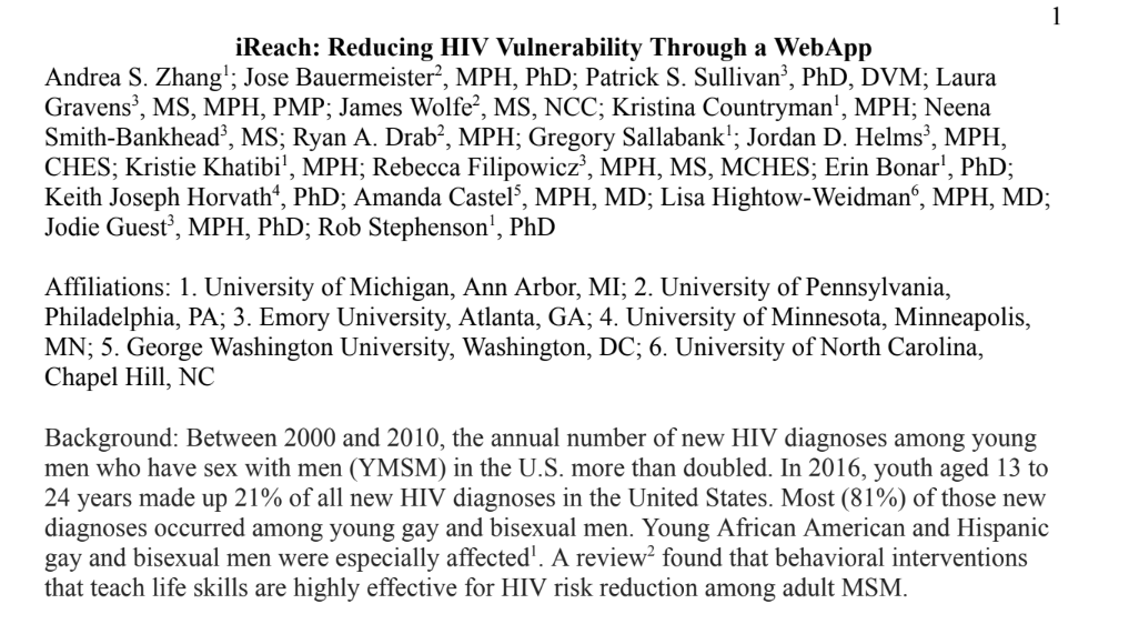 iReach: Reducing HIV Vulnerability Through a WebApp |
