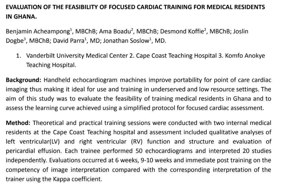 Evaluation of the Feasibility of Focused Cardiac Training for Medical Residents in Ghana |