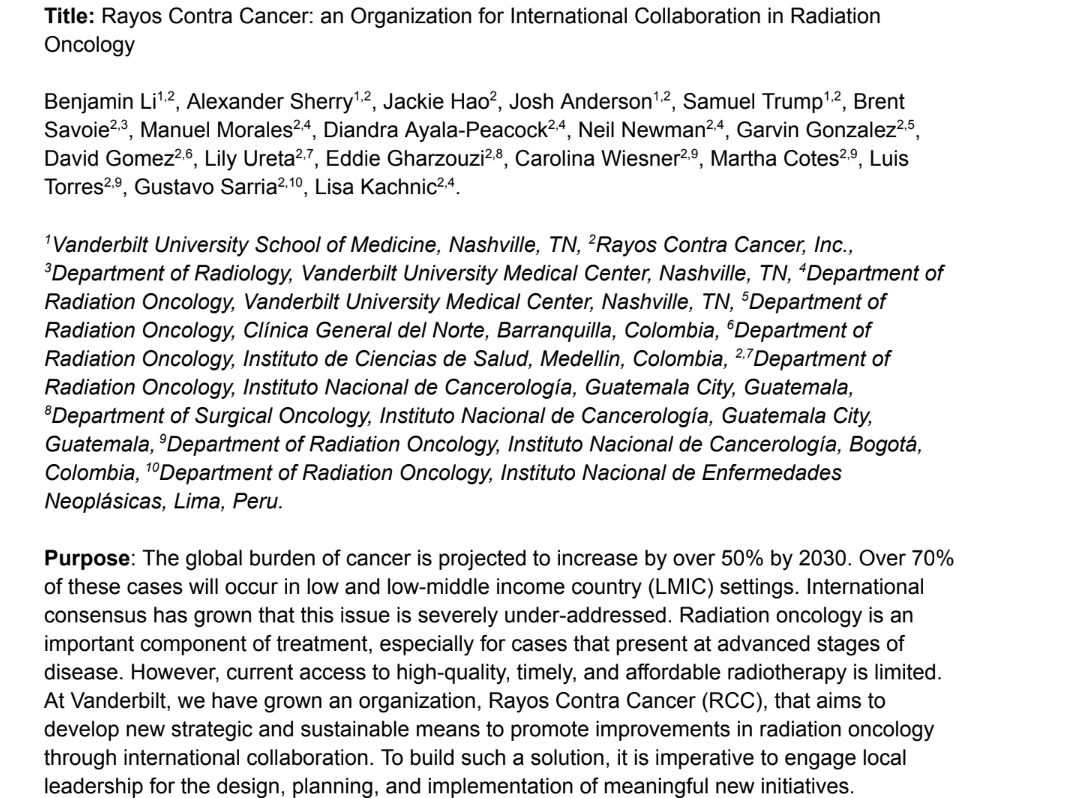 Rayos Contra Cancer: an Organization for International Collaboration in Radiation Oncology |