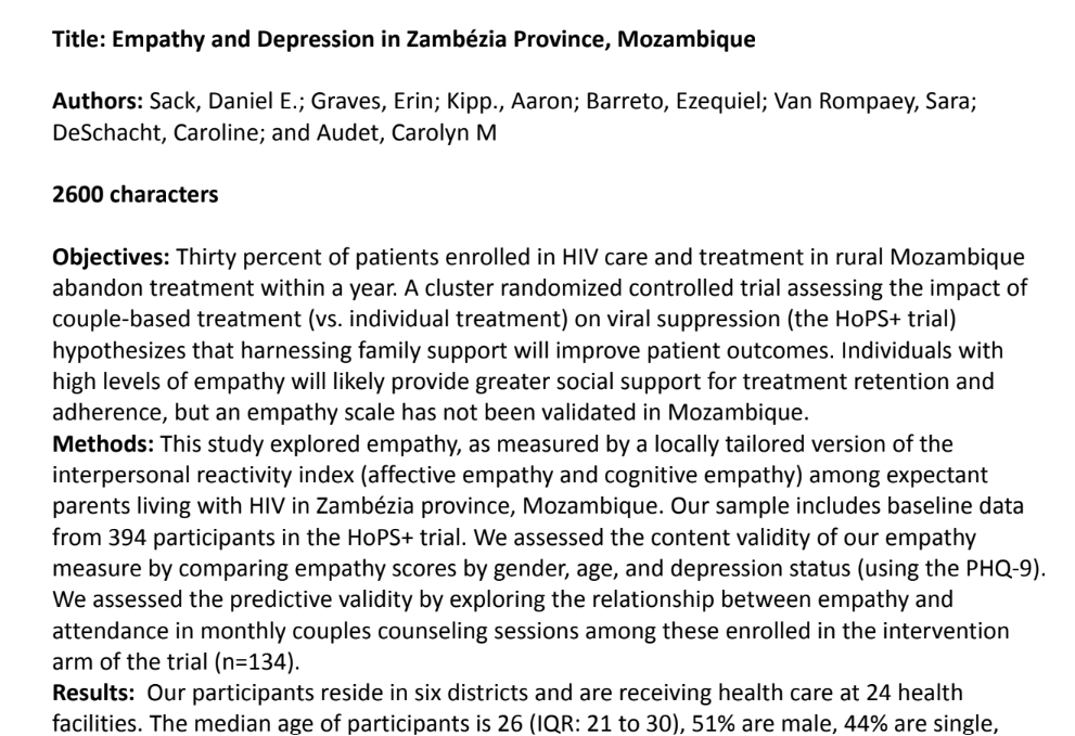 Presenters: Daniel E. Sack, Erin Graves, Aaron Kipp, Ezequiel Barreto, Sara Van Rompaey, Caroline DeSchacht, Carolyn M. Audet |