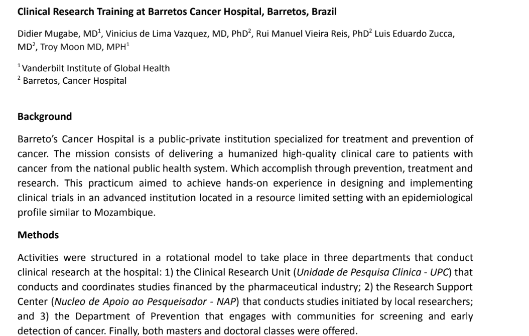 Clinical Research Training at Barretos Cancer Hospital, Barretos, Brazil |