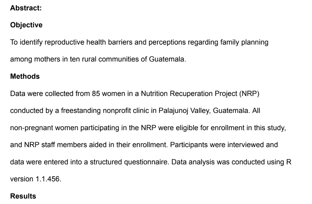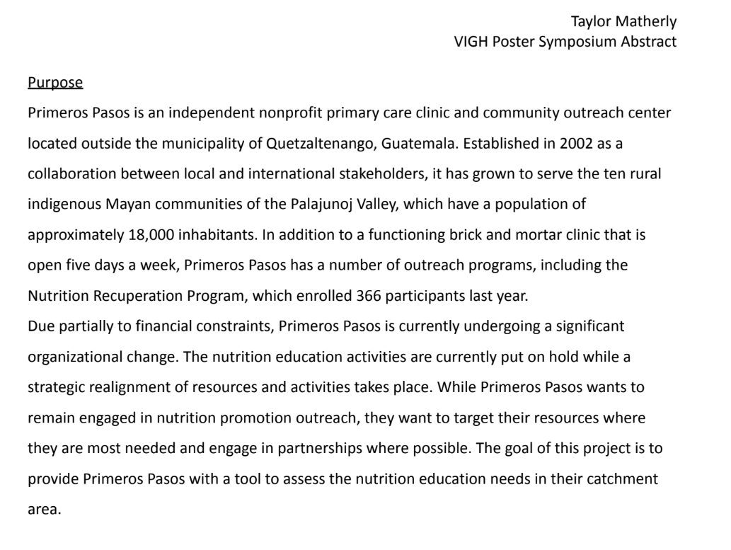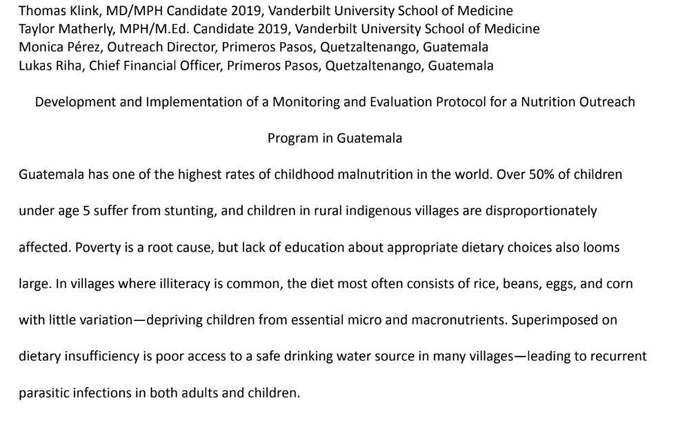 Development and Implementation of a Monitoring and Evaluation Protocol for a Nutrition Outreach Program in Guatemala |