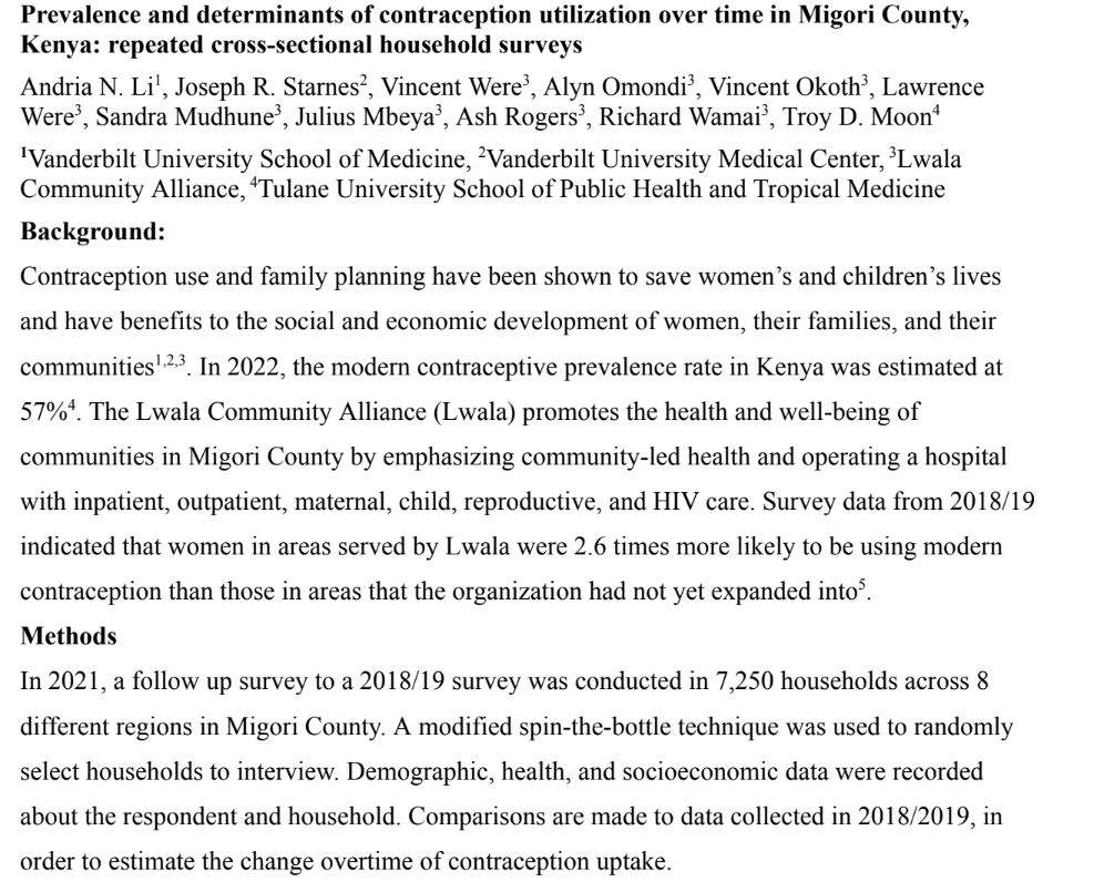 Prevalence and Determinants of Contraception Utilization Over Time in Migori County, Kenya: Repeated Cross-Sectional Household Surveys |