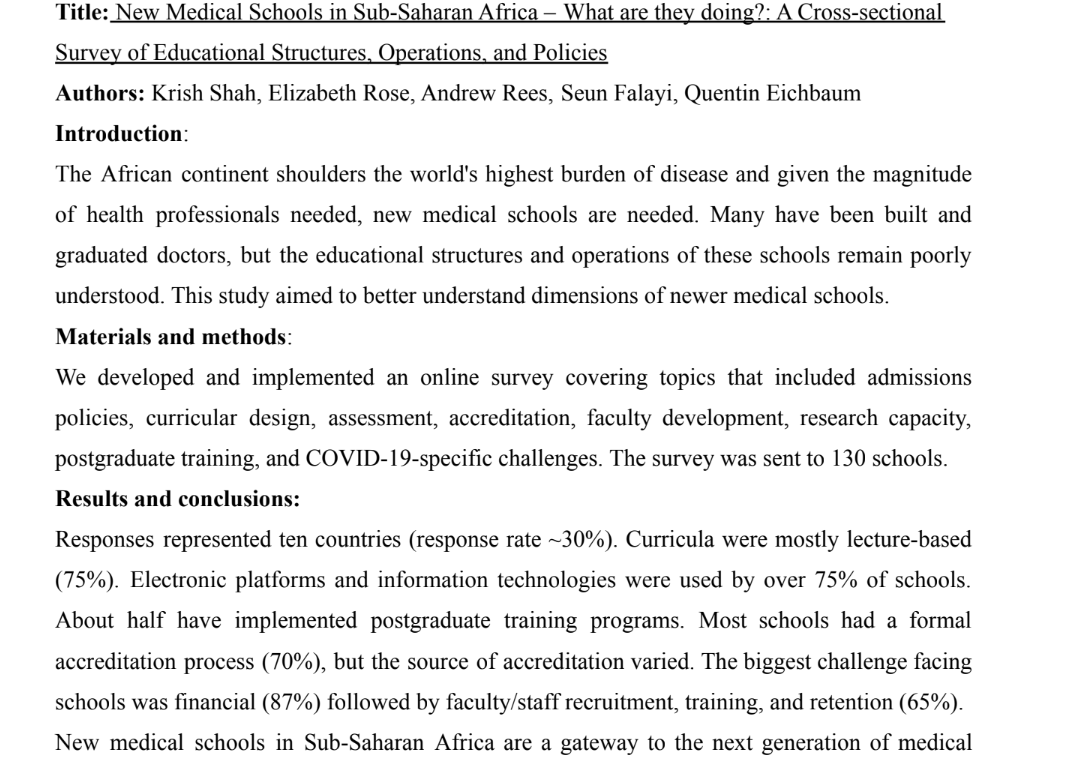 New Medical Schools in Sub-Saharan Africa – What are they doing?: A Cross-sectional Survey of Educational Structures, Operations, and Policies |