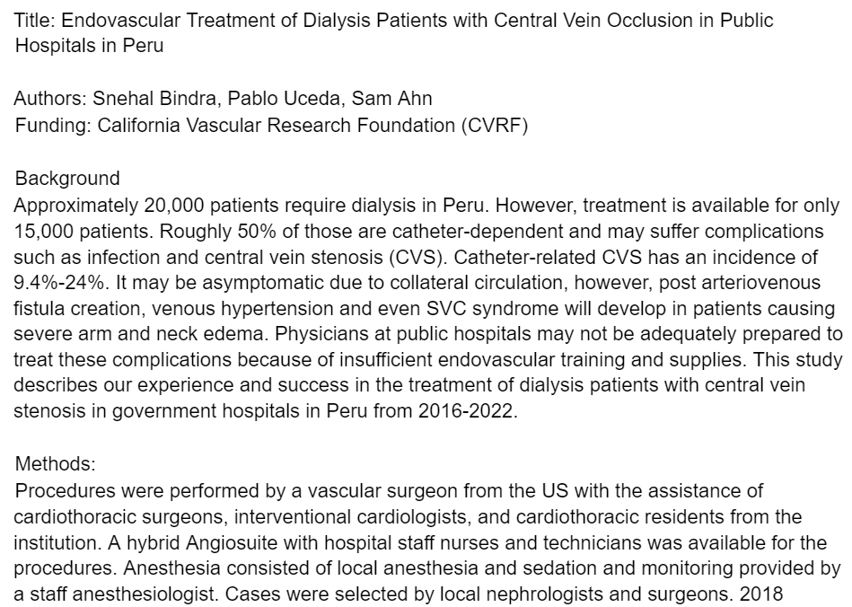 Endovascular Treatment of Dialysis Patients with Central Vein Occlusion in Public Hospitals in Peru |