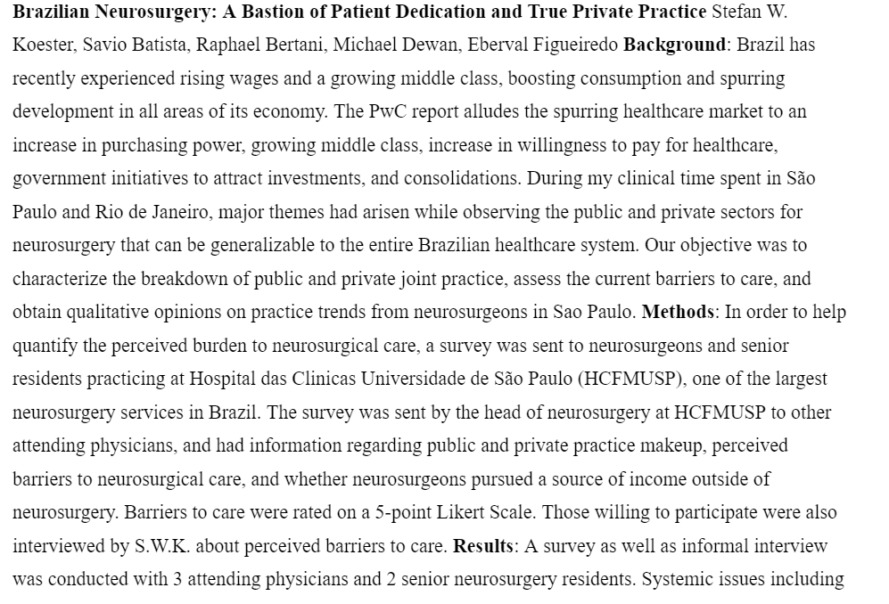 Brazilian Neurosurgery: a Bastion of Patient Dedication and True Private Practice |